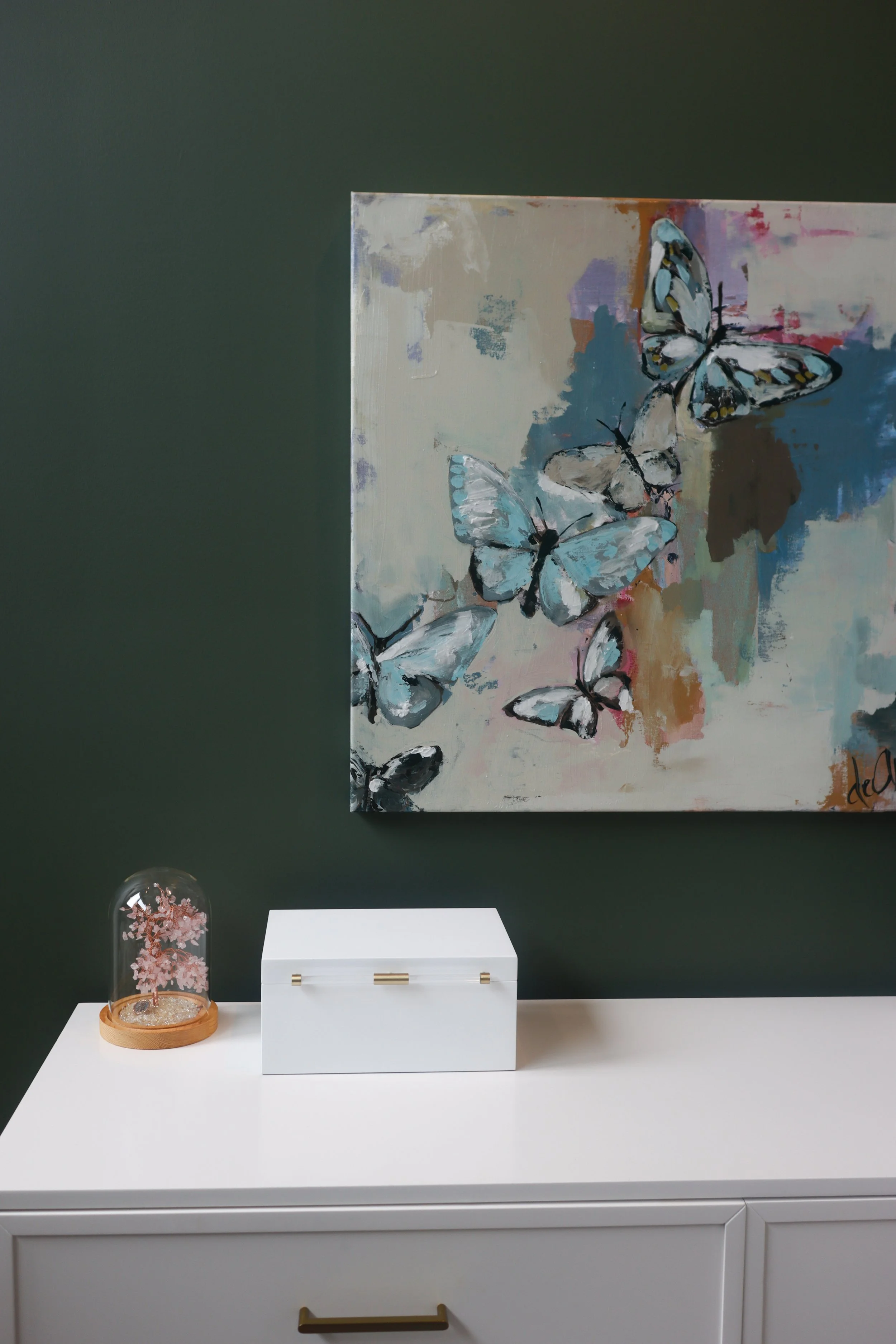 A GORGEOUS TRADITIONAL MAIN BEDROOMThis main bedroom and bathroom transformation in East Nashville turned a bland, builder-grade space into a stunning, modern-bohemian retreat. With white walls and no character to start, the space was reimagined using bold emerald green, soft pink accents, and warm layered textures. The result is a cozy, eclectic oasis that blends modern style with boho charm, perfectly tailored to reflect the homeowner’s personality. From the updated color palette to thoughtfully curated decor, this project proves that even the most basic spaces can become beautifully bespoke with the right design vision.